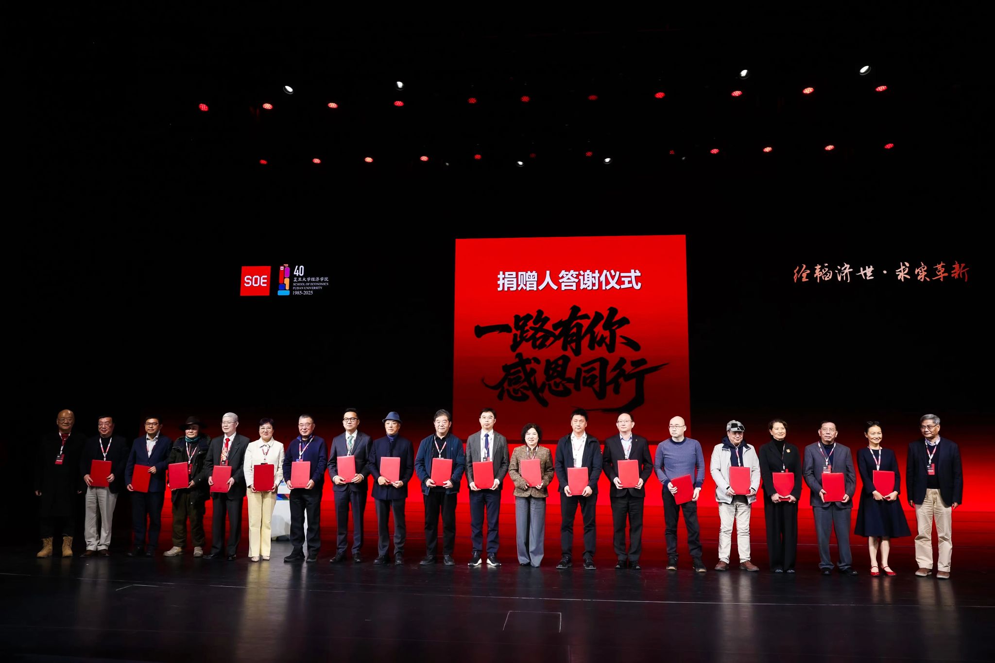 大会最激动人心的篇章之一,是共同见证承载着全体经院人十年梦想的经济学院新大楼落成启用。这座矗立于国权路579号的现代化建筑,凝聚了无数校友和社会友人的深情厚谊与鼎力支持。大会播放了新大楼建设纪实影片和外滩亮灯仪式视频,并举行了捐赠答谢仪式,向赵定理、汪新芽、夏晓辉等慷慨捐资的校友及社会各界友人致以最诚挚的感谢。